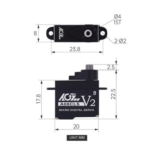 AGFRC - A06CLS V2 SERVO (20T Spline, JST 1.5 Plug) - Black